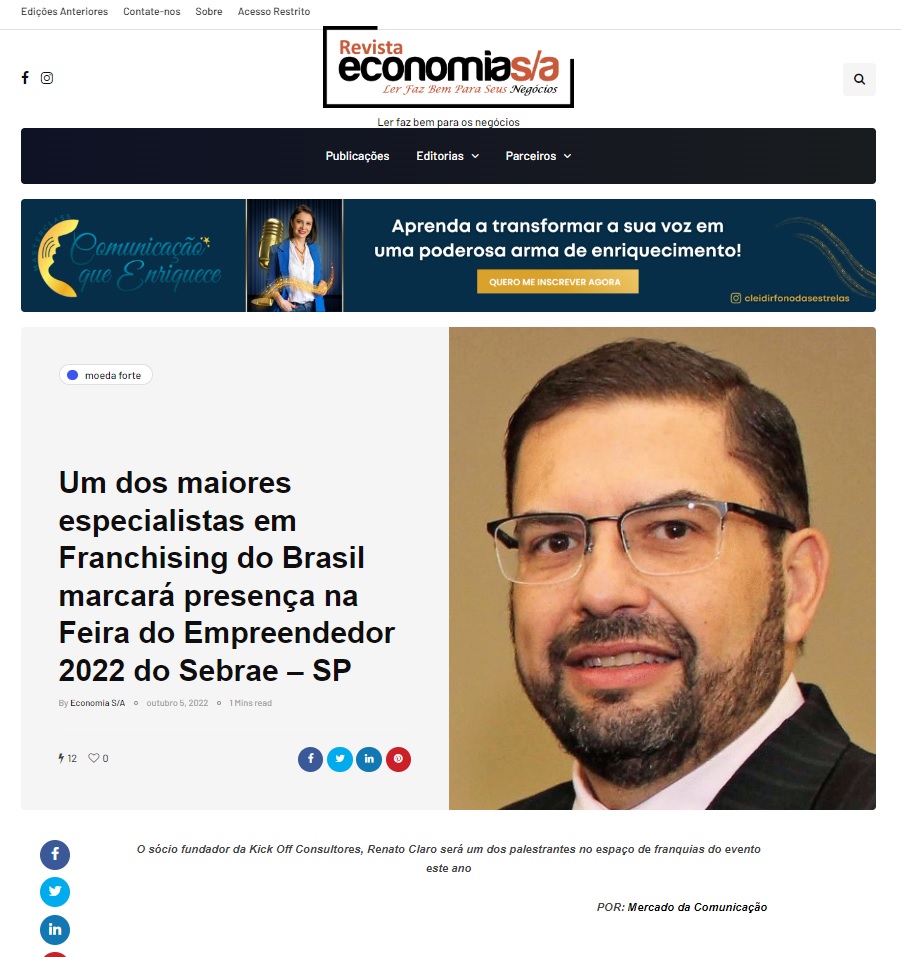 No portal Na Mídia – por Renato Claro, você encontrara tudo que está bombando em franquias e negócio.