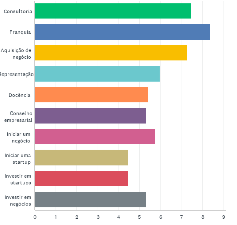Preferência por Iniciar Novos Negócios: A maioria dos respondentes manifestou interesse em iniciar um novo negócio, mesmo que seja por meio de uma franquia. A aquisição de um negócio já lucrativo também é uma opção popular, enquanto poucos demonstraram disposição para adquirir negócios em dificuldades para realizar uma reestruturação.